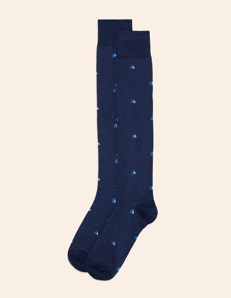 Men's blue long socks with small sailboat print Sailing