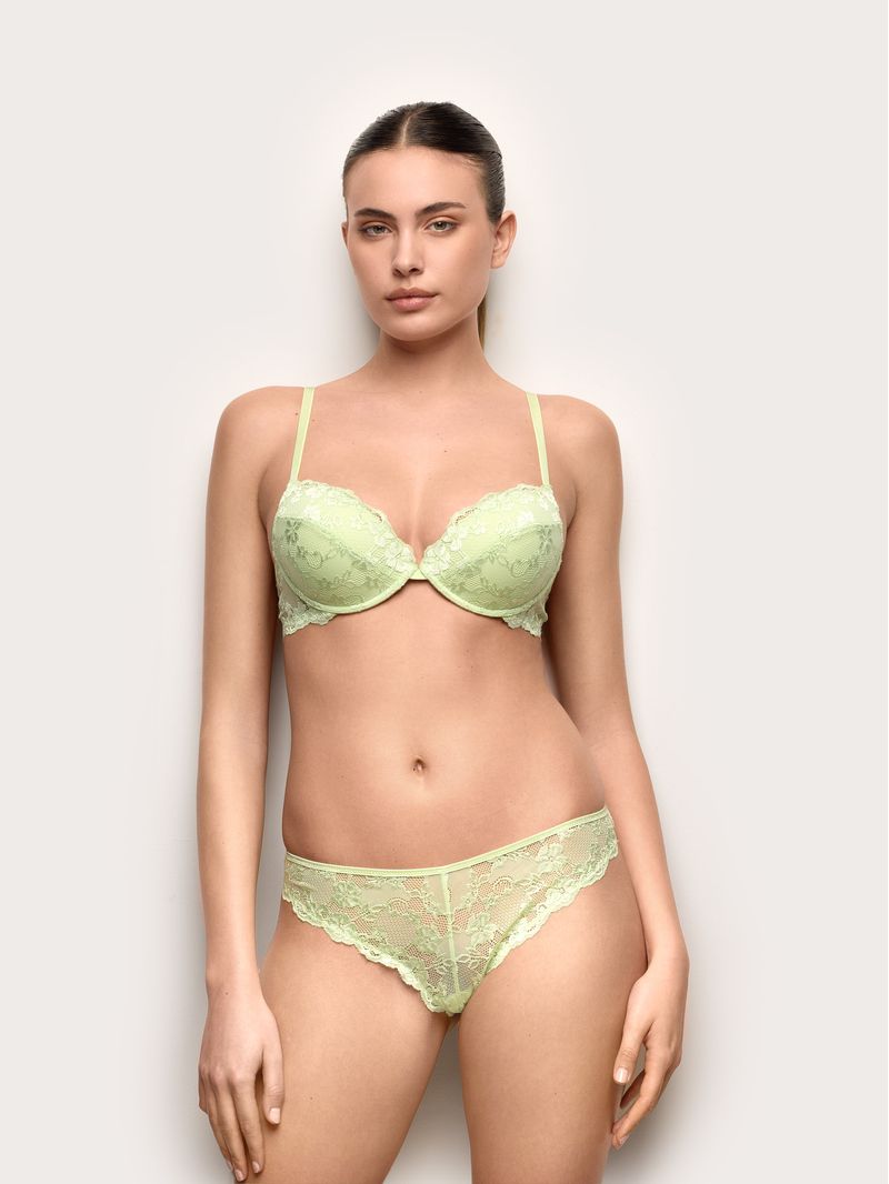 Slip brasiliana interamente in pizzo elasticizzato, dal design leggero e femminile. Il taglio brasiliano valorizza natural...Leggi di più